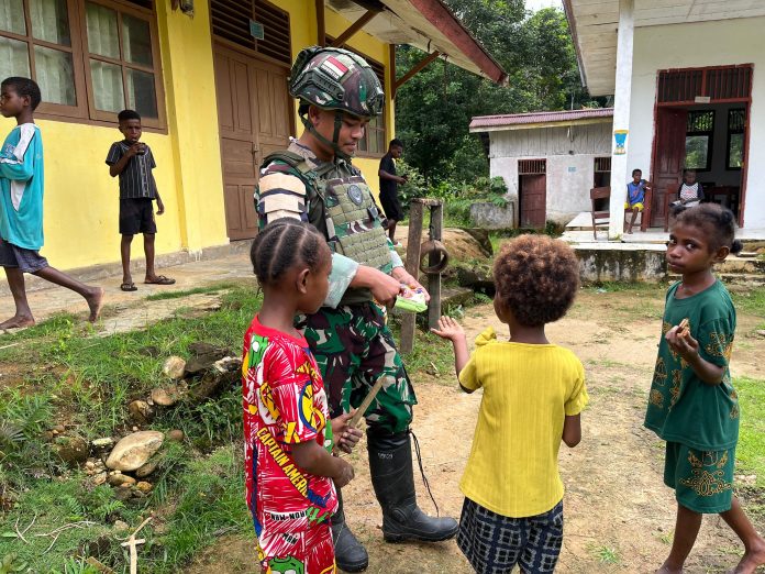 TERASBATAM.ID – Satuan Tugas Pengamanan Perbatasan (Satgas Pamtas) RI-PNG Mobile Yonif 10 Marinir/SBY melaksanakan kegiatan pembersihan di SD YPK Ebenhezer, Kampung Fuog, Minggu (27/07/2025).