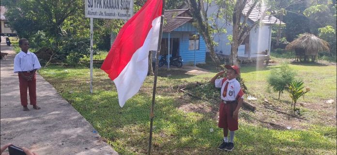 TERASBATAM.ID – Prajurit Satuan Tugas Pengamanan Perbatasan (Satgas Pamtas) RI-PNG Mobile Yonif 10 Marinir/SBY menggelar kirab bendera dan mengajar di SD YPPK Sorry, Distrik Aifat Timur Tengah, Kabupaten Maybrat. Kegiatan ini dilaksanakan dalam rangka menyemarakkan HUT ke-80 Kemerdekaan RI dan menanamkan nilai nasionalisme kepada anak-anak perbatasan.